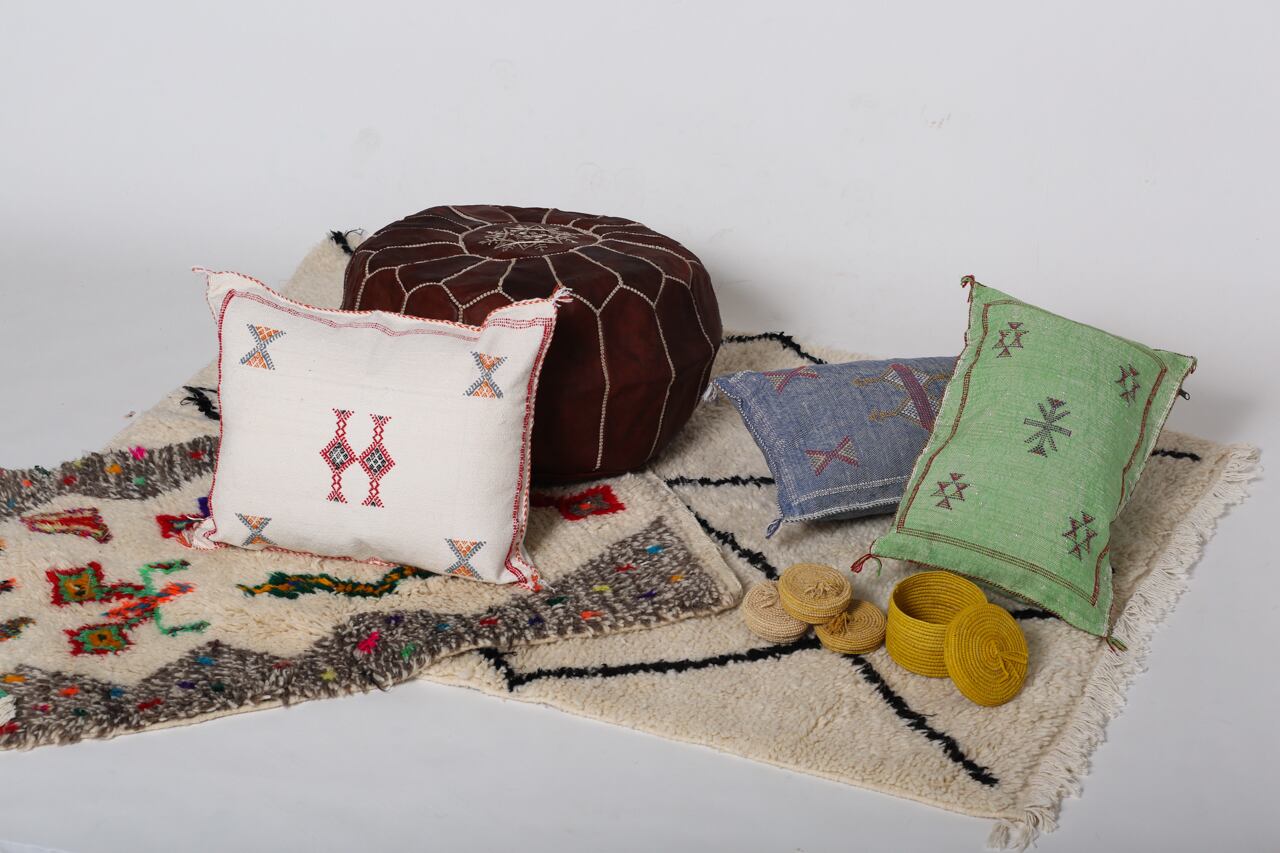 クッションカバーはベルベル民族の女性によってひとつひとつハンドメイドで作られており、ラグ同様に刺繍は制作者のインスピレーションによってデザインされています。
