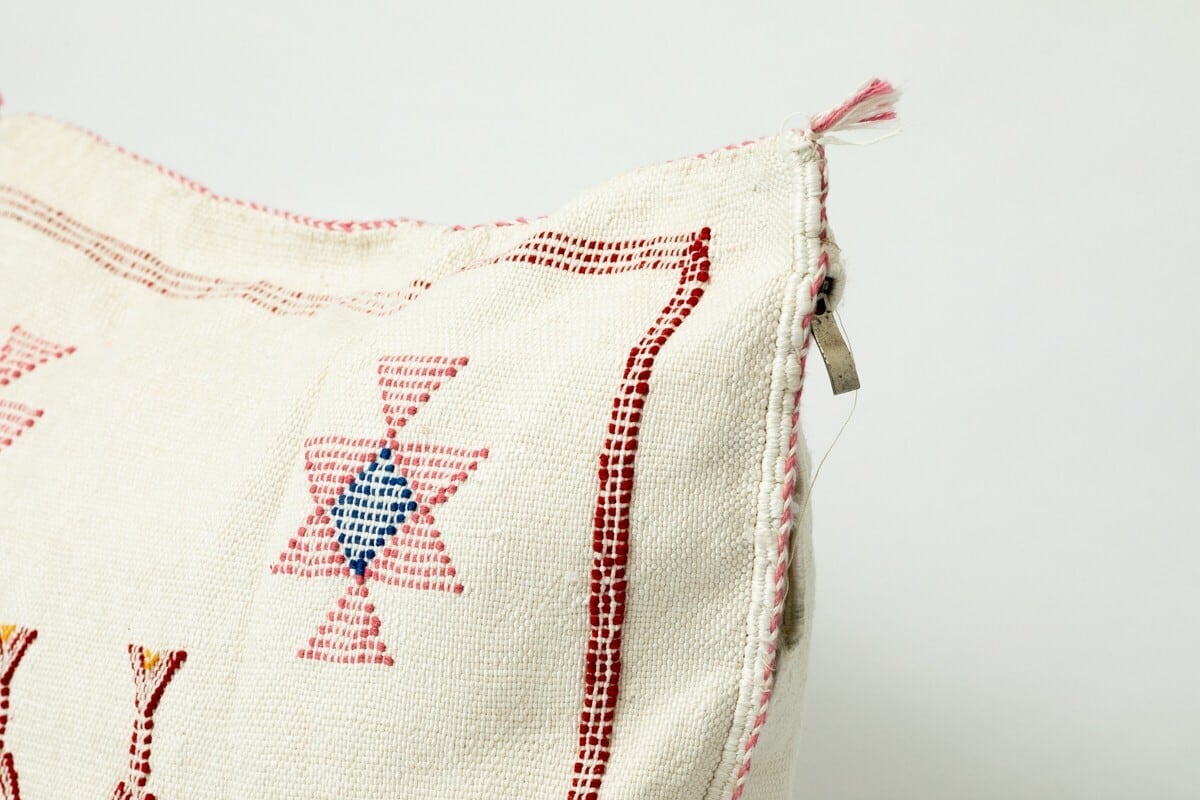 クッションカバーはベルベル民族の女性によってひとつひとつハンドメイドで作られており、ラグ同様に刺繍は制作者のインスピレーションによってデザインされています。
